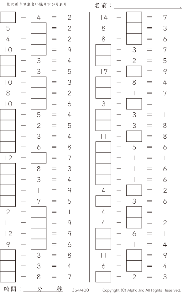 1桁の引き算2(繰り下がりあり) [問題]354/400
