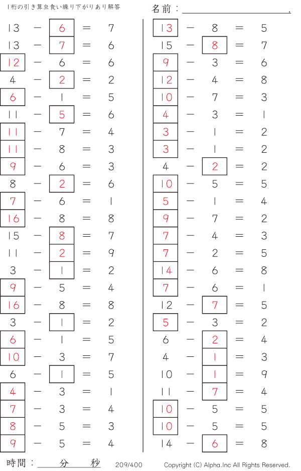 1桁の引き算2(繰り下がりあり) [解答]209/400