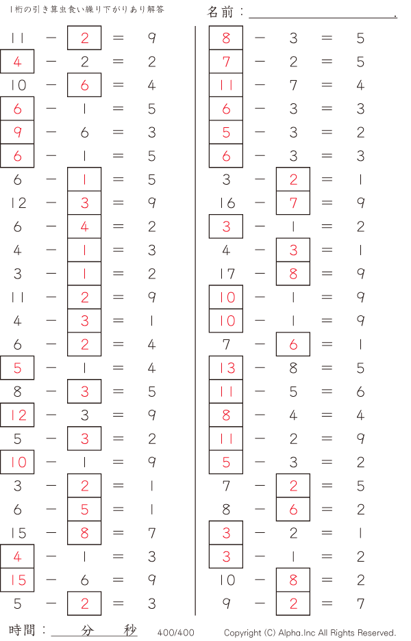 1桁の引き算2(繰り下がりあり) [解答]400/400