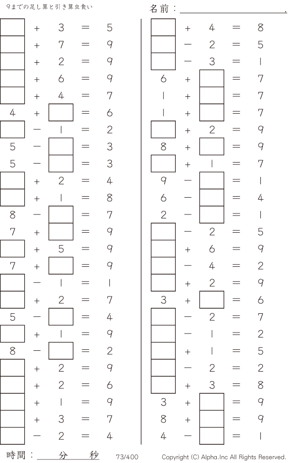 9までの足し算と引き算 [問題]073/400