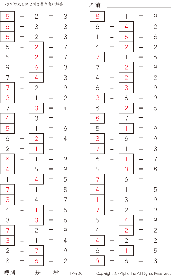 9までの足し算と引き算 [解答]019/400