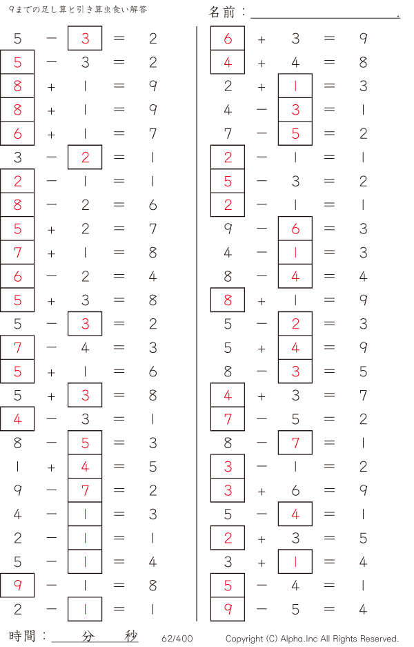 9までの足し算と引き算 [解答]062/400