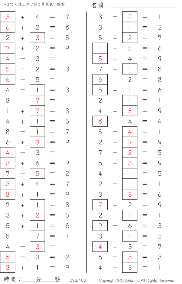 9までの足し算と引き算 [解答]276/400