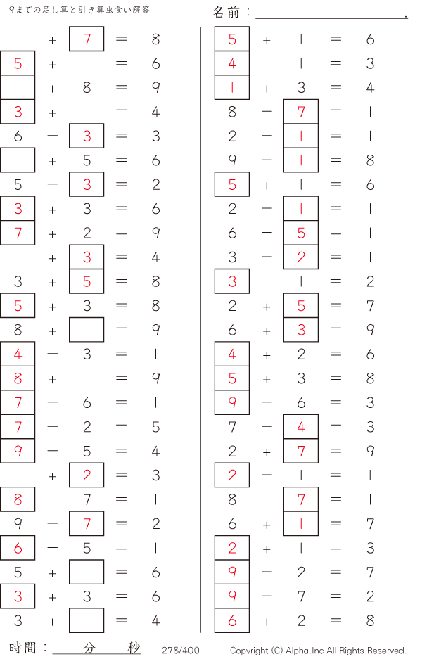 9までの足し算と引き算 [解答]278/400