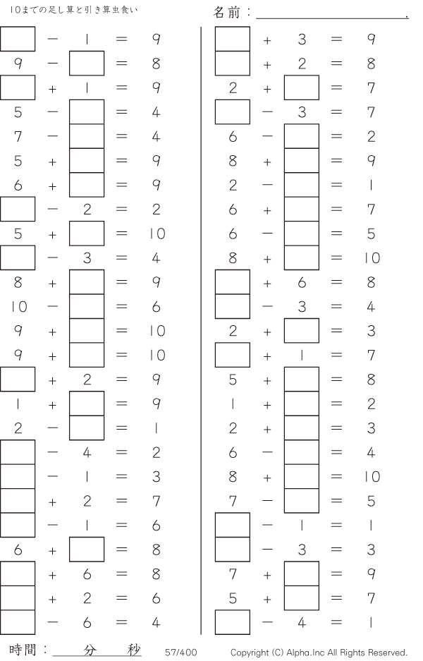 10までの足し算と引き算 [問題]057/400