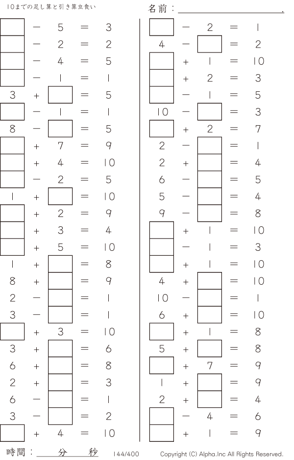 10までの足し算と引き算 [問題]144/400