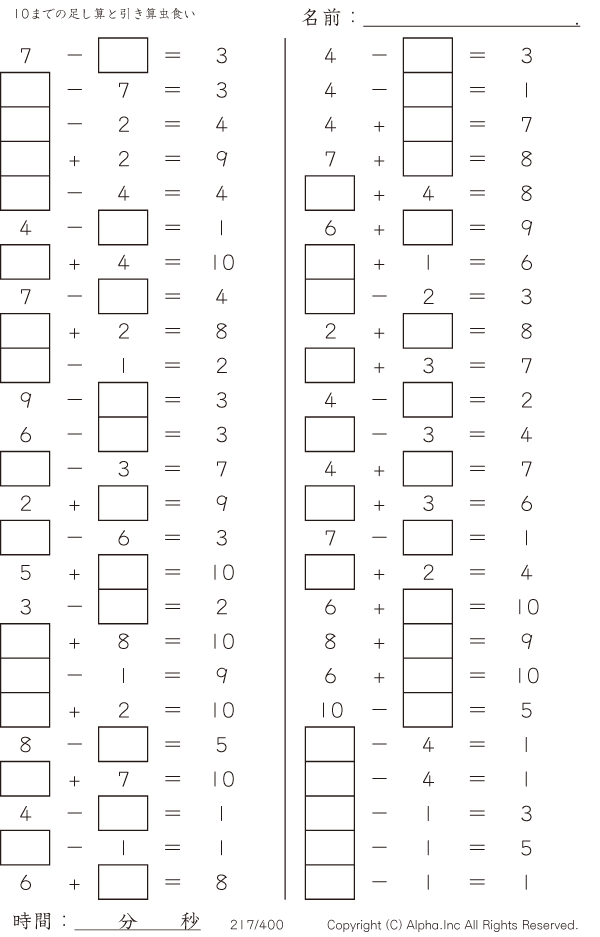 10までの足し算と引き算 [問題]217/400