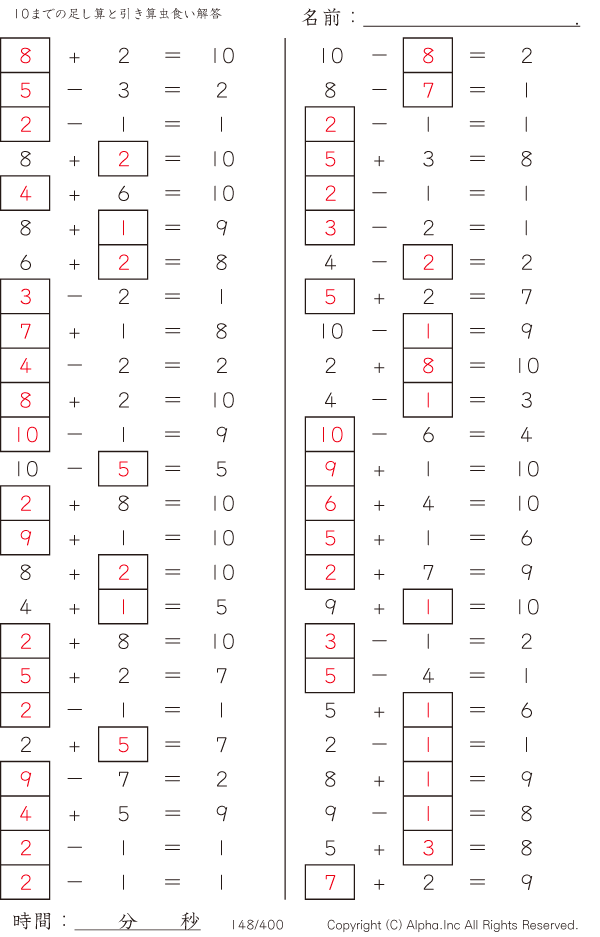 10までの足し算と引き算 [解答]148/400