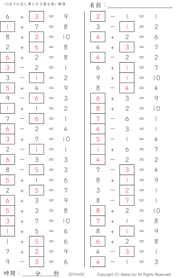 10までの足し算と引き算 [解答]307/400
