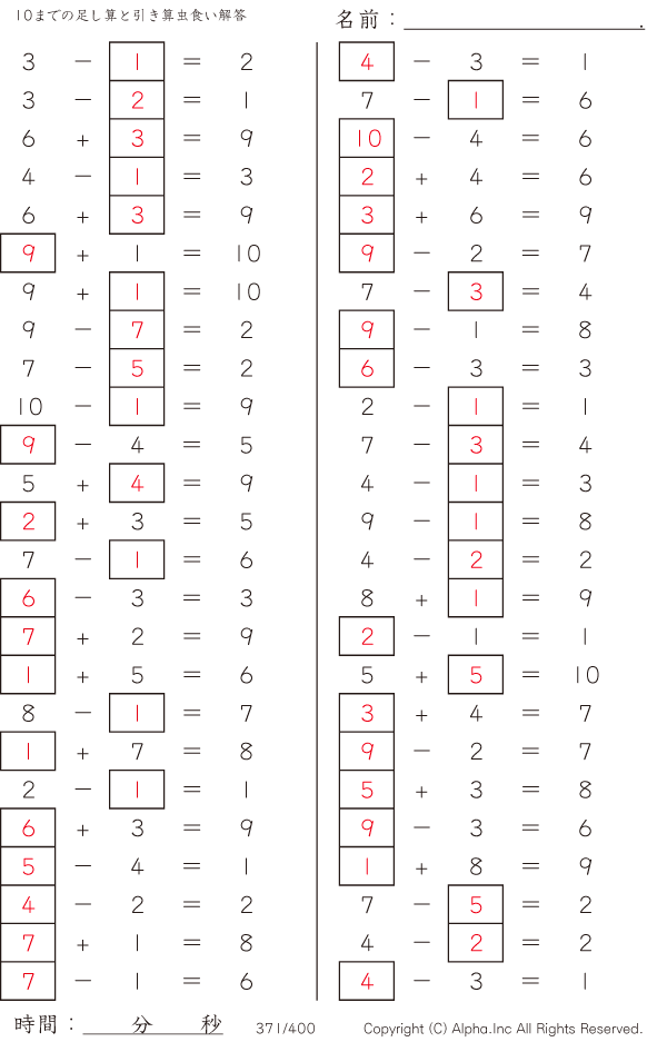 上記のボタンから「10までの足し算と引き算」の算数数学ドリル・計算ドリル(PDFプリント)がダウンロードできます。個人利用は無料です(家庭以外での配布は有料です)。
