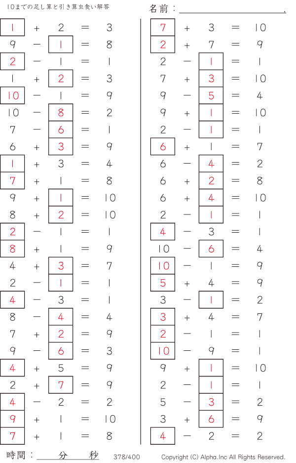 10までの足し算と引き算 [解答]378/400