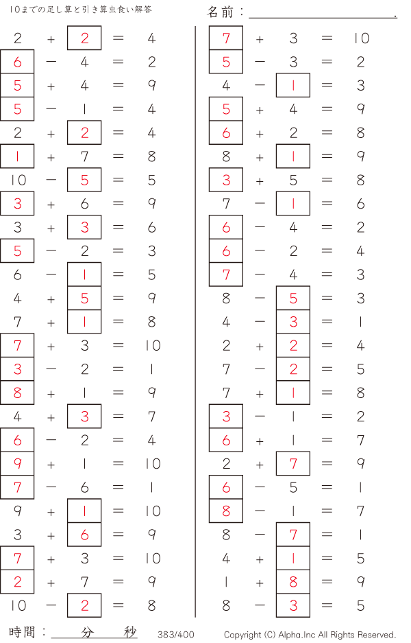 10までの足し算と引き算 [解答]383/400
