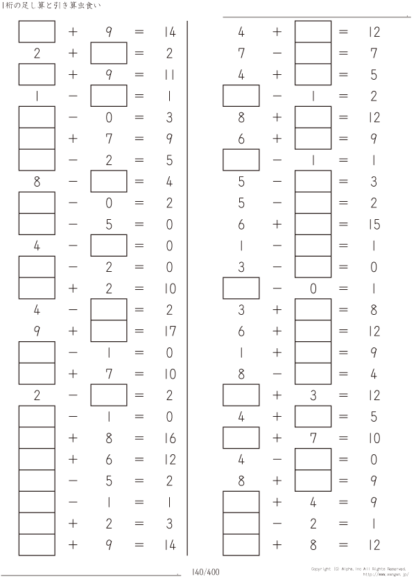 1桁の足し算と引き算 [問題]140/400