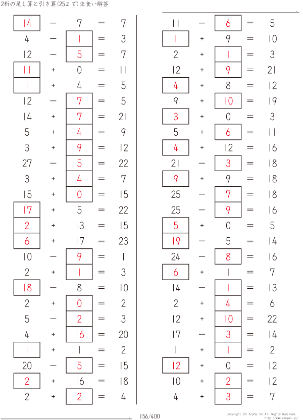 上記のボタンから「答えが25までの引き算と足し算」の算数数学ドリル・計算ドリル(PDFプリント)がダウンロードできます。個人利用は無料です(家庭以外での配布は有料です)。