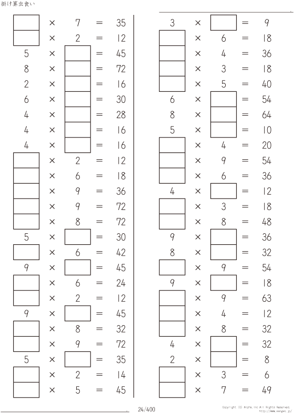 虫食い・1桁の掛け算 [問題]024/400
