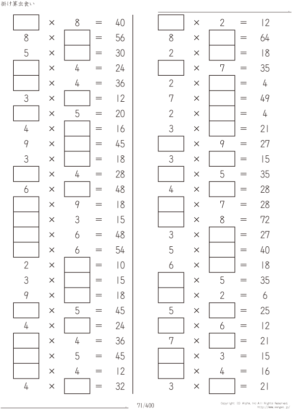虫食い・1桁の掛け算 [問題]071/400