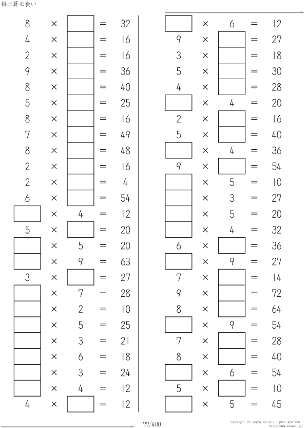 虫食い・1桁の掛け算 [問題]077/400