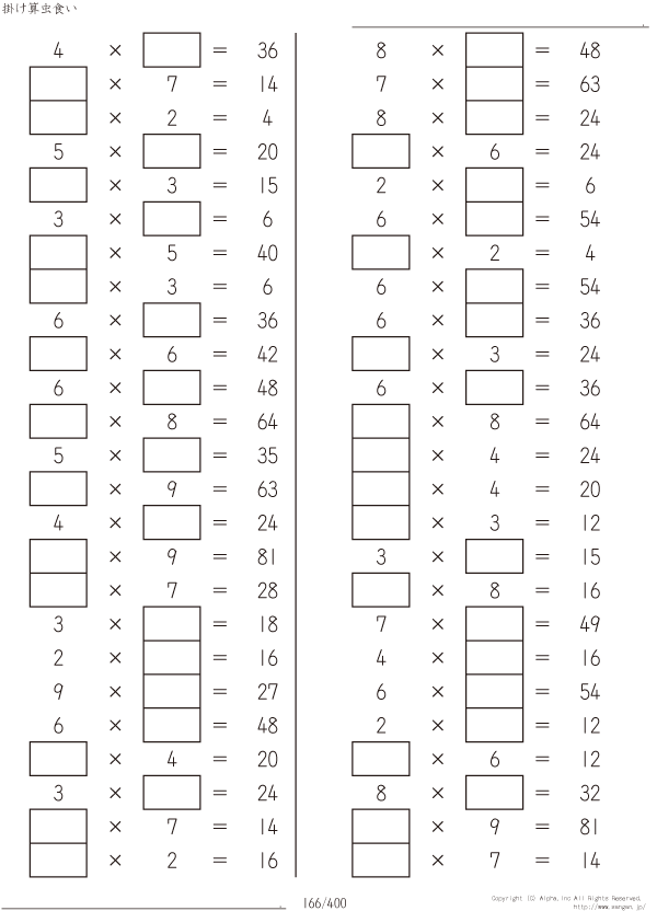虫食い・1桁の掛け算 [問題]166/400