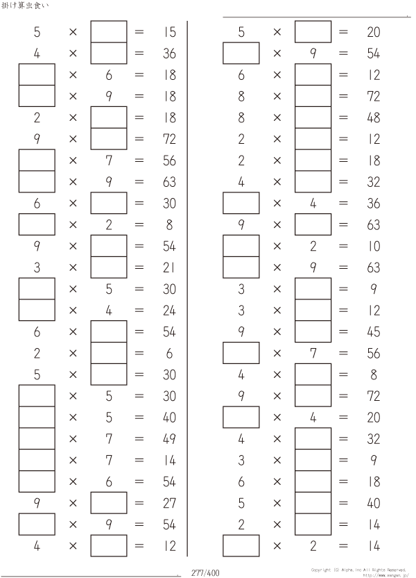 虫食い・1桁の掛け算 [問題]277/400