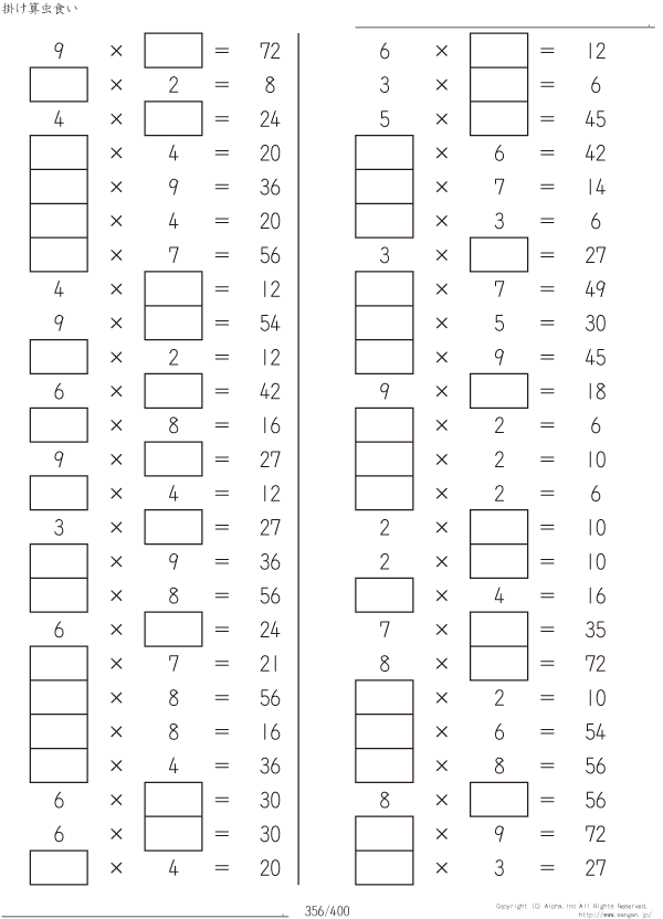 虫食い・1桁の掛け算 [問題]356/400
