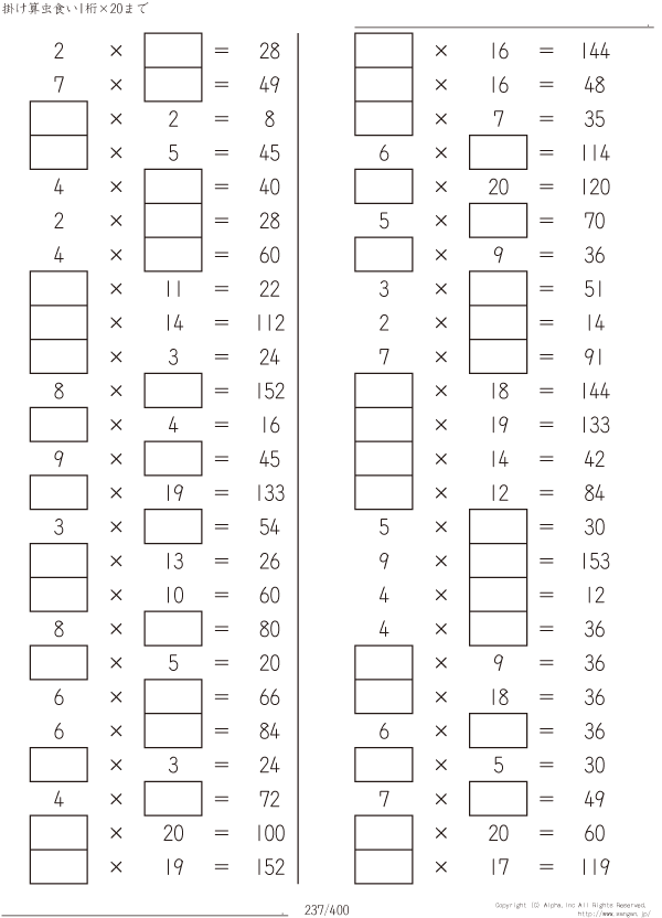 1桁かける20までの掛け算 [問題]237/400