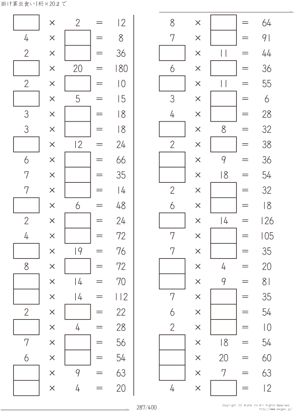 1桁かける20までの掛け算 [問題]287/400