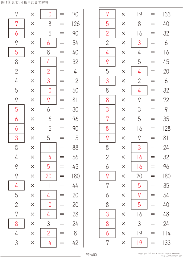 1桁かける20までの掛け算 [解答]099/400