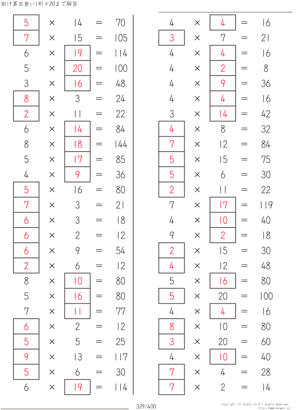 1桁かける20までの掛け算 [解答]329/400