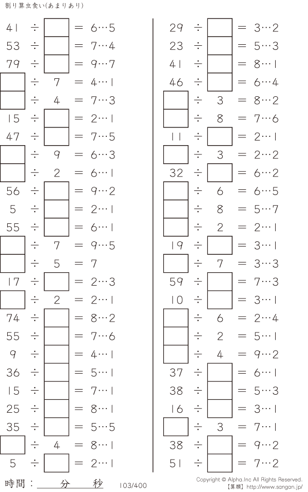 虫食い・割り算・あまりあり [問題]103/400