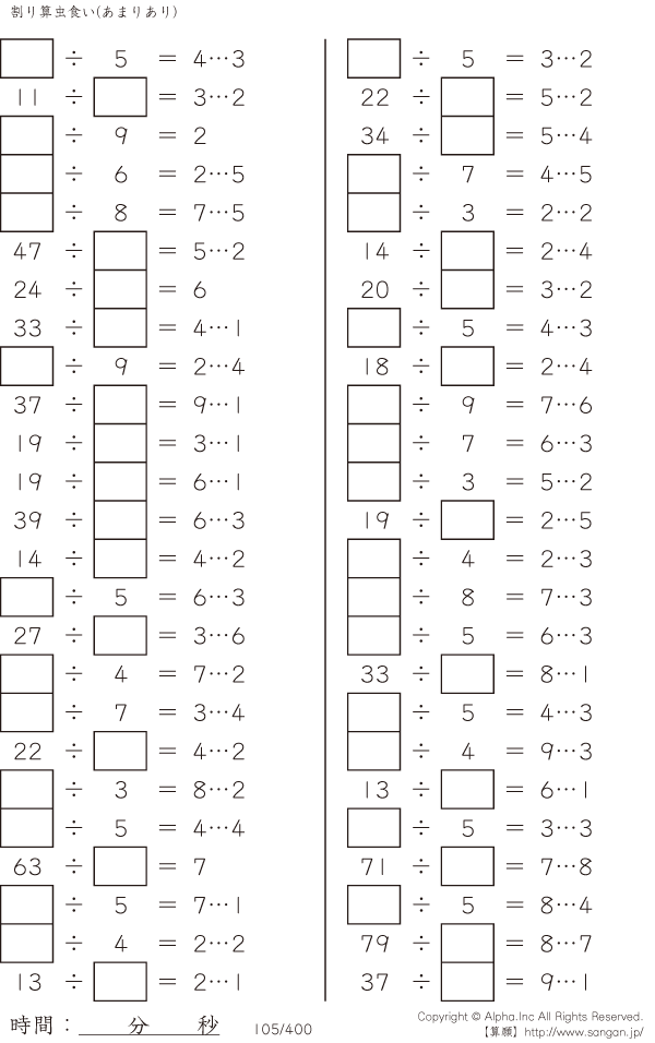 虫食い・割り算・あまりあり [問題]105/400