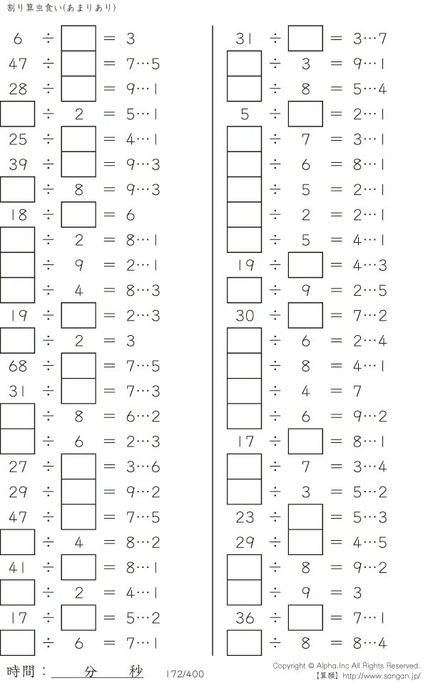 虫食い・割り算・あまりあり [問題]172/400