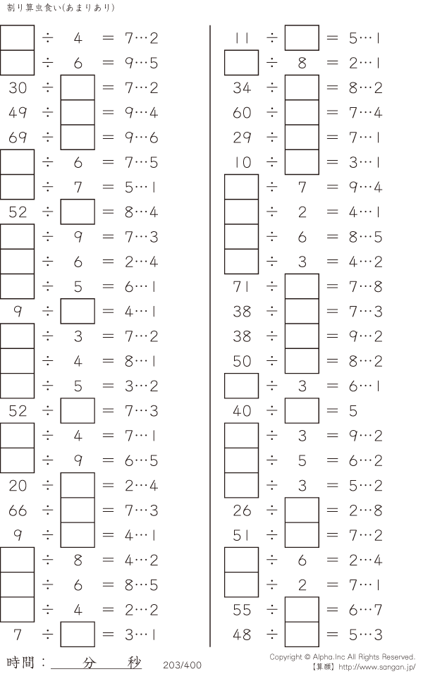 虫食い・割り算・あまりあり [問題]203/400