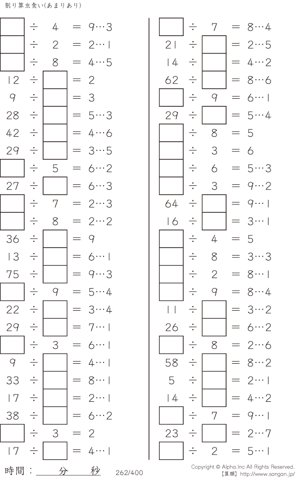 虫食い・割り算・あまりあり [問題]262/400