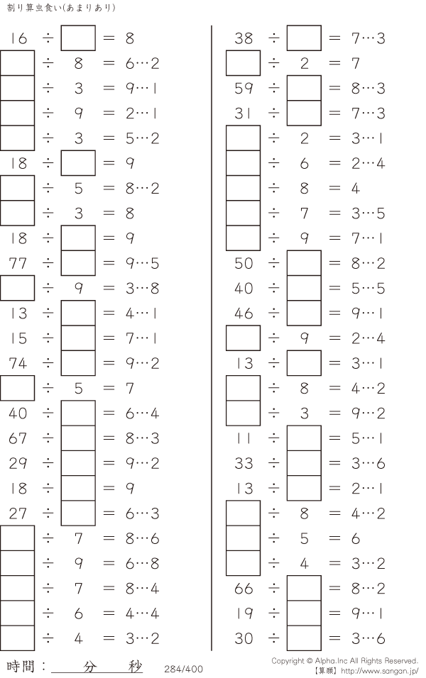 虫食い・割り算・あまりあり [問題]284/400