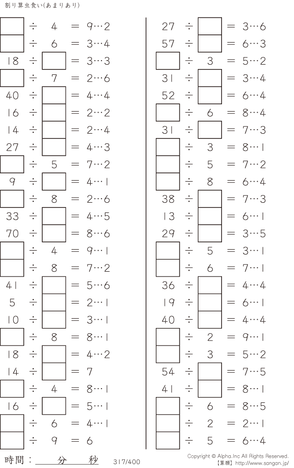 虫食い・割り算・あまりあり [問題]317/400