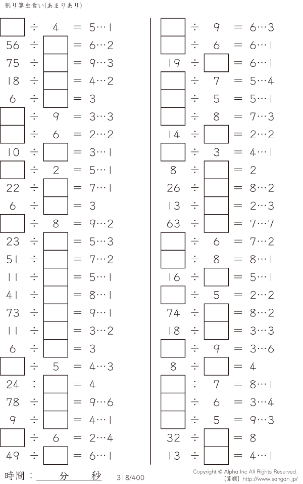 虫食い・割り算・あまりあり [問題]318/400