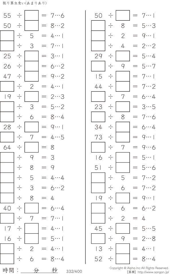 虫食い・割り算・あまりあり [問題]332/400