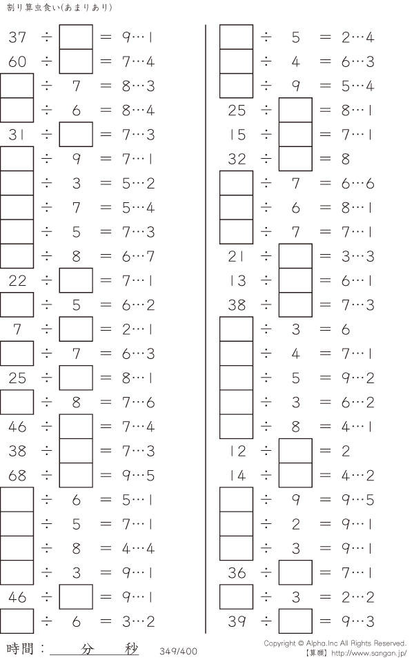 虫食い・割り算・あまりあり [問題]349/400