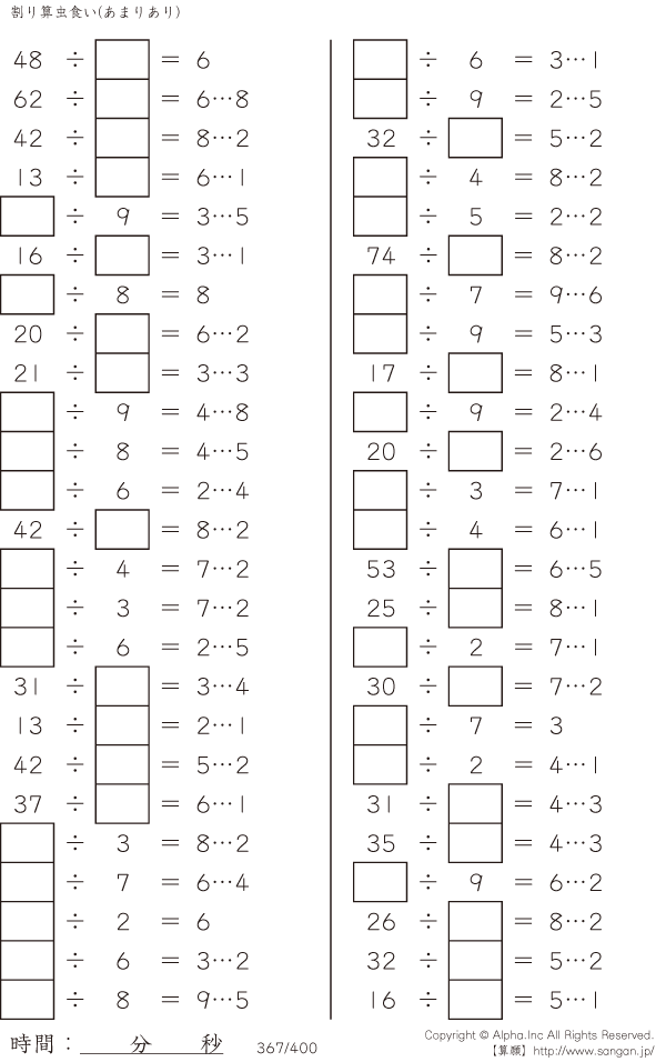 虫食い・割り算・あまりあり [問題]367/400