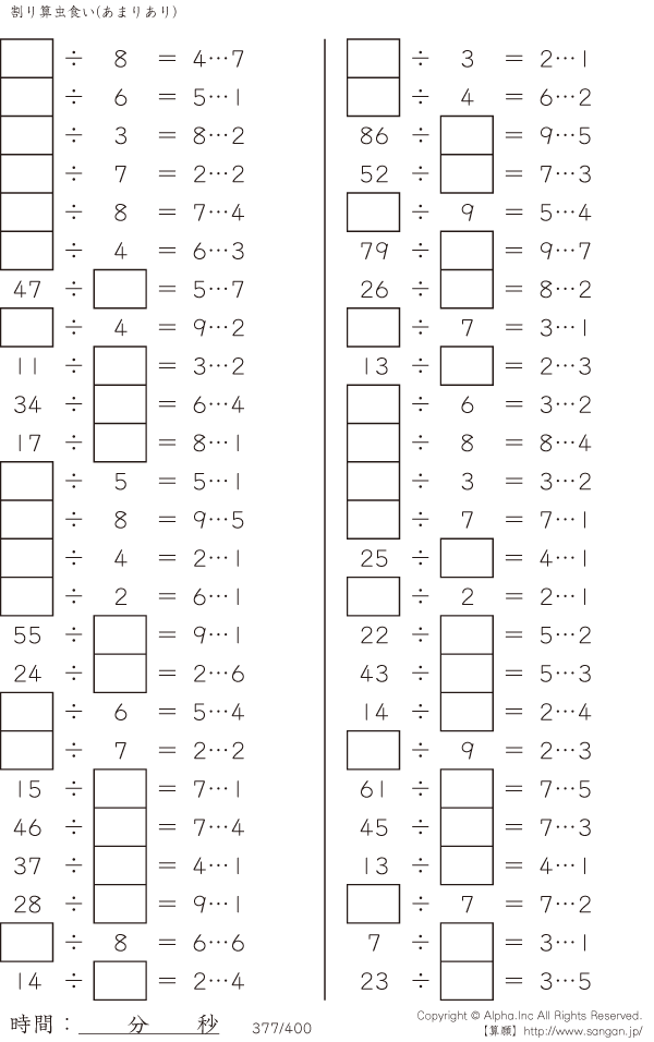虫食い・割り算・あまりあり [問題]377/400