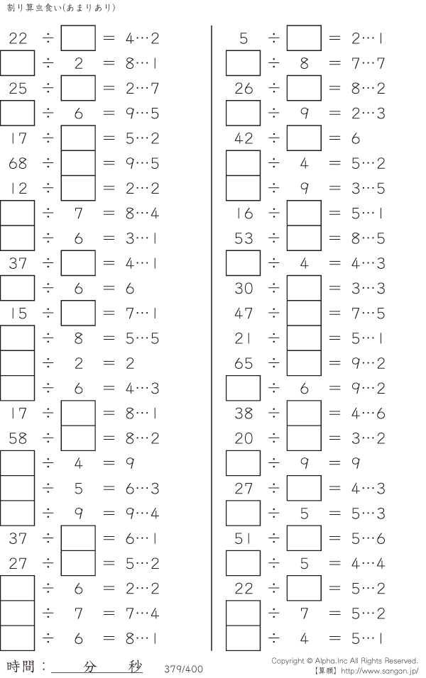 虫食い・割り算・あまりあり [問題]379/400