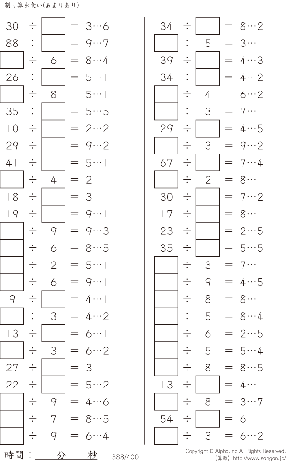 虫食い・割り算・あまりあり [問題]388/400