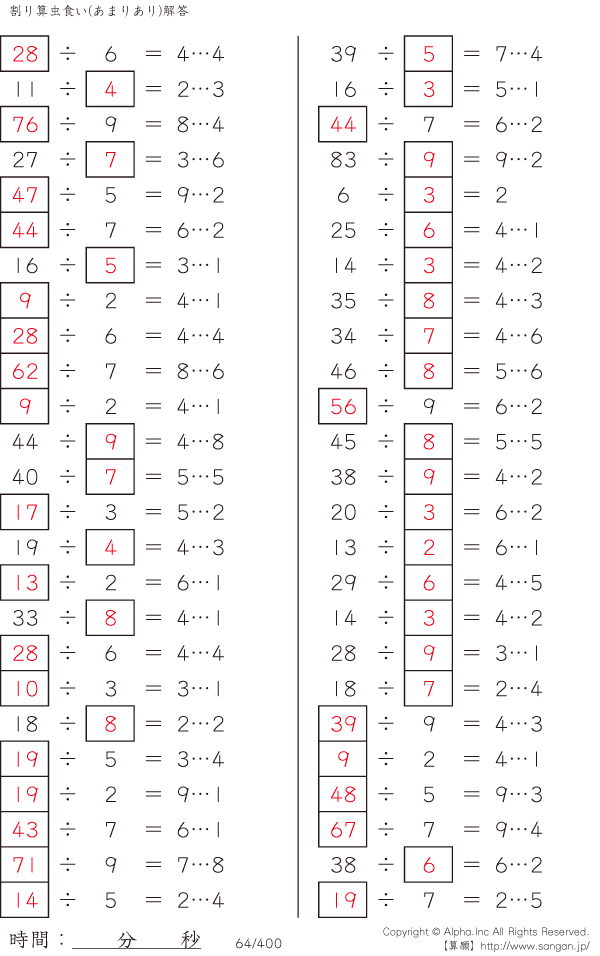 虫食い・割り算・あまりあり [解答]064/400