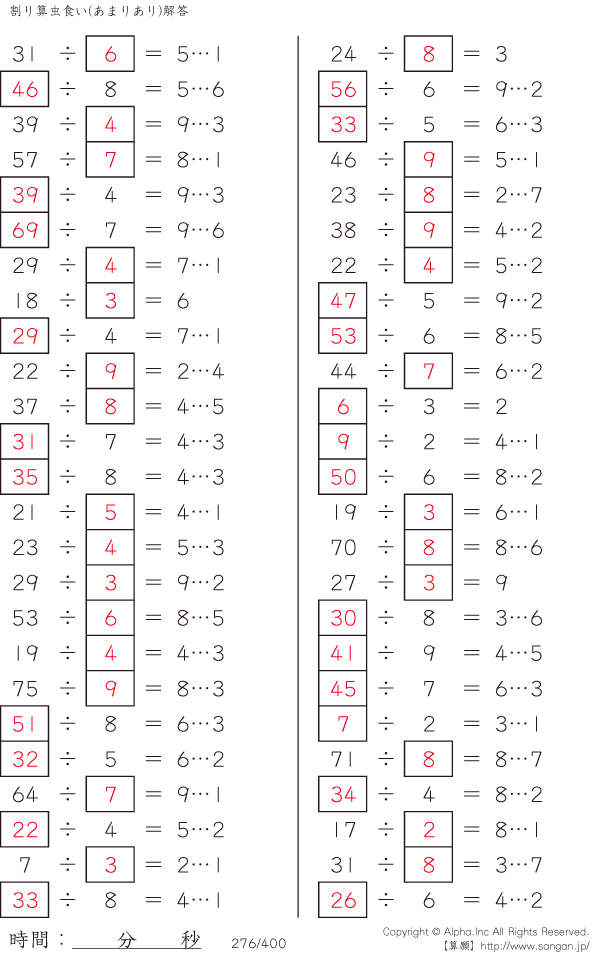 虫食い・割り算・あまりあり [解答]276/400