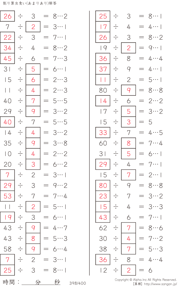 虫食い・割り算・あまりあり [解答]398/400