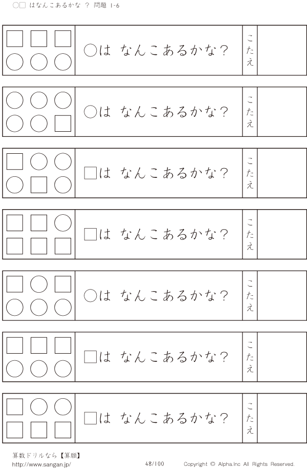 ○□はなんこかな?1-6-[プリント一覧] [問題]048/100