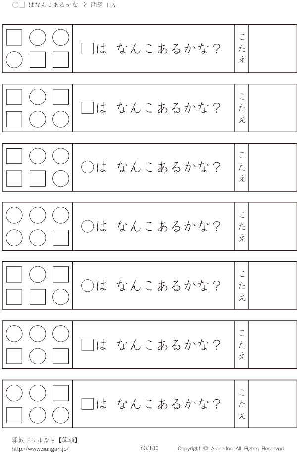 ○□はなんこかな?1-6-[プリント一覧] [問題]063/100