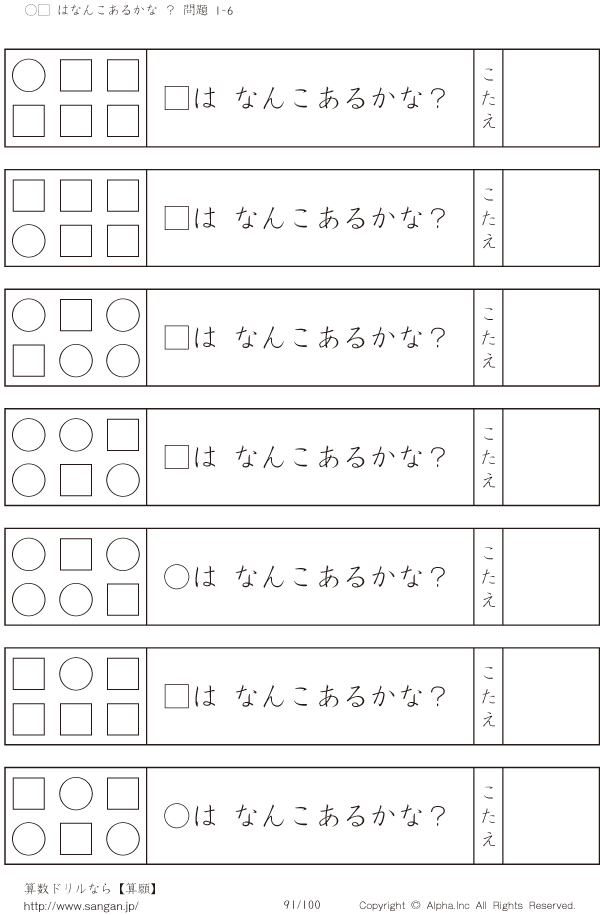 ○□はなんこかな?1-6-[プリント一覧] [問題]091/100