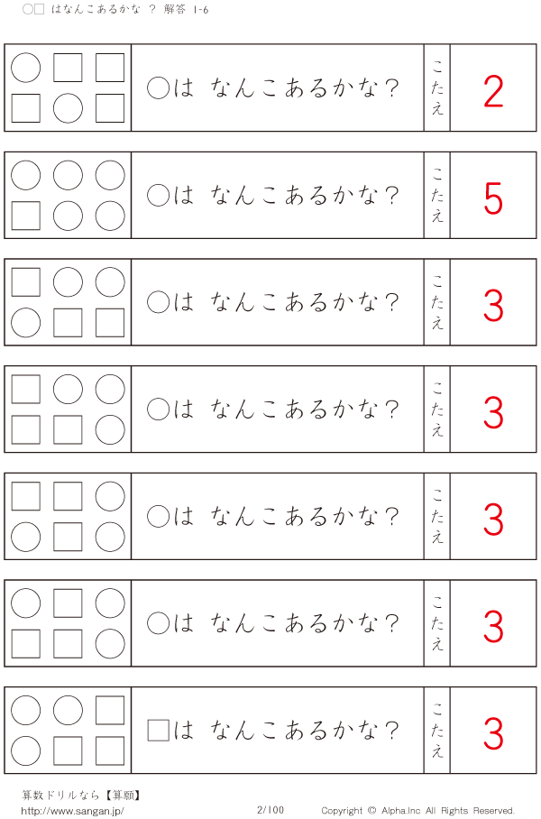 ○□はなんこかな?1-6-[プリント一覧] [解答]002/100