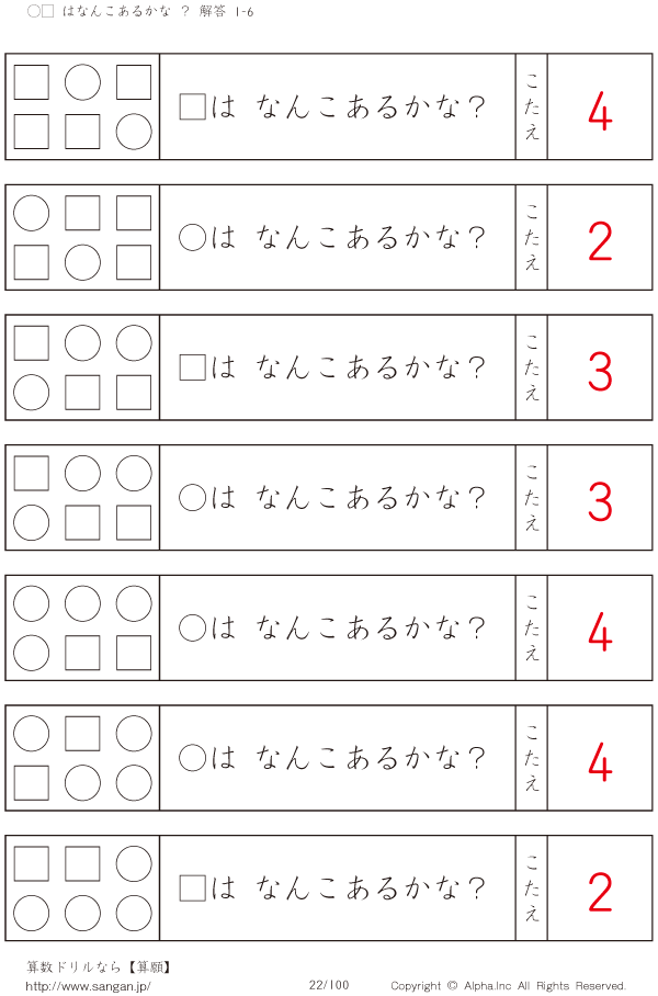 ○□はなんこかな?1-6-[プリント一覧] [解答]022/100